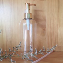 - Chai đựng mỹ phẩm bằng nhựa trong, nắp có vòi nhấn nhỏ giọt.
