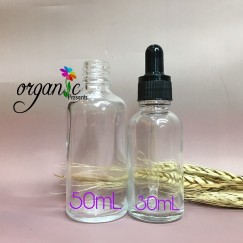 Chai đựng mỹ phẩm bằng thủy tinh trong, nắp bóp kèm ống thủy tinh nhỏ giọt.