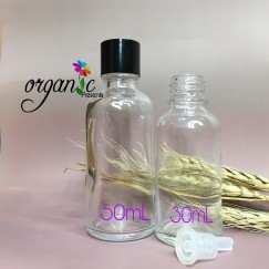 - Chai thủy tinh đựng mỹ phẩm bằng thủy tinh trong suốt, nắp có đầu nhỏ giọt.