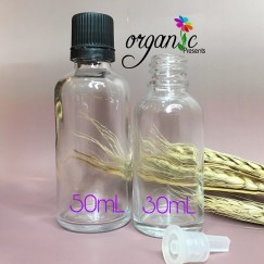 - Chai thủy tinh đựng mỹ phẩm bằng thủy tinh trong suốt, nắp có đầu nhỏ giọt.